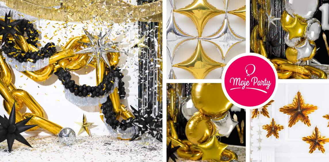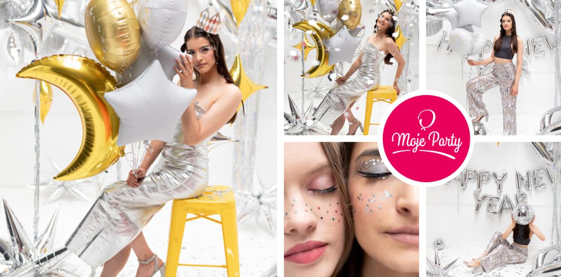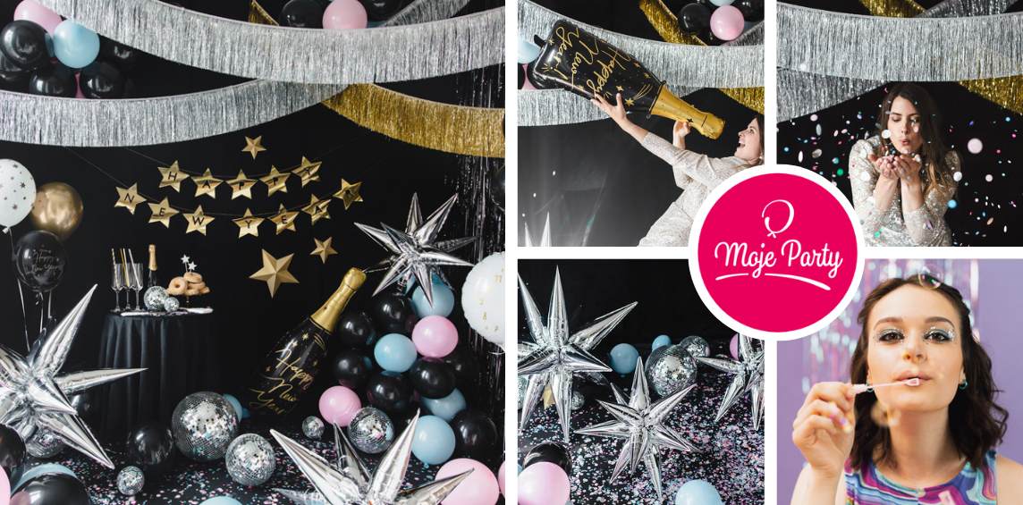 Chcete být silvestrovskou jedničkou na Instagramu? Zvolte naše silvestrovské novinky. Zákoutí s přípitkem bude určitě populární scénou. Velké balónky ve tvaru hvězd, obří balónkové šampusy, prostorové girlandy i zářívé konfety vytvoří velký efekt. Ikdyž zlatá, černá a stříbrná barva je luxusní kombinace, několik pastelových tónů může silvestrovskou výzdobu krásně rozsvítit.