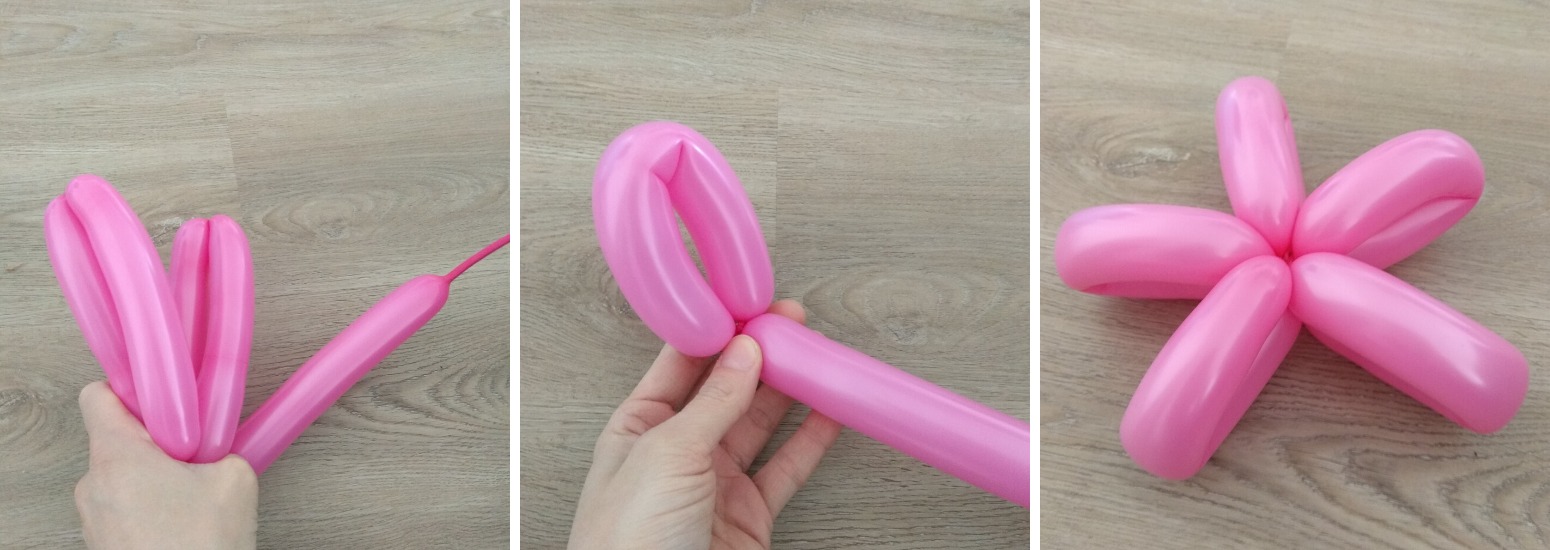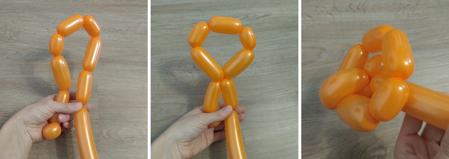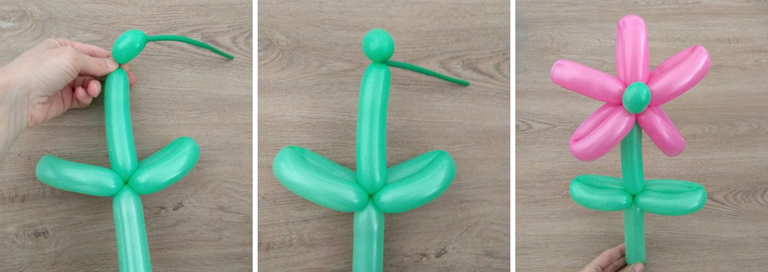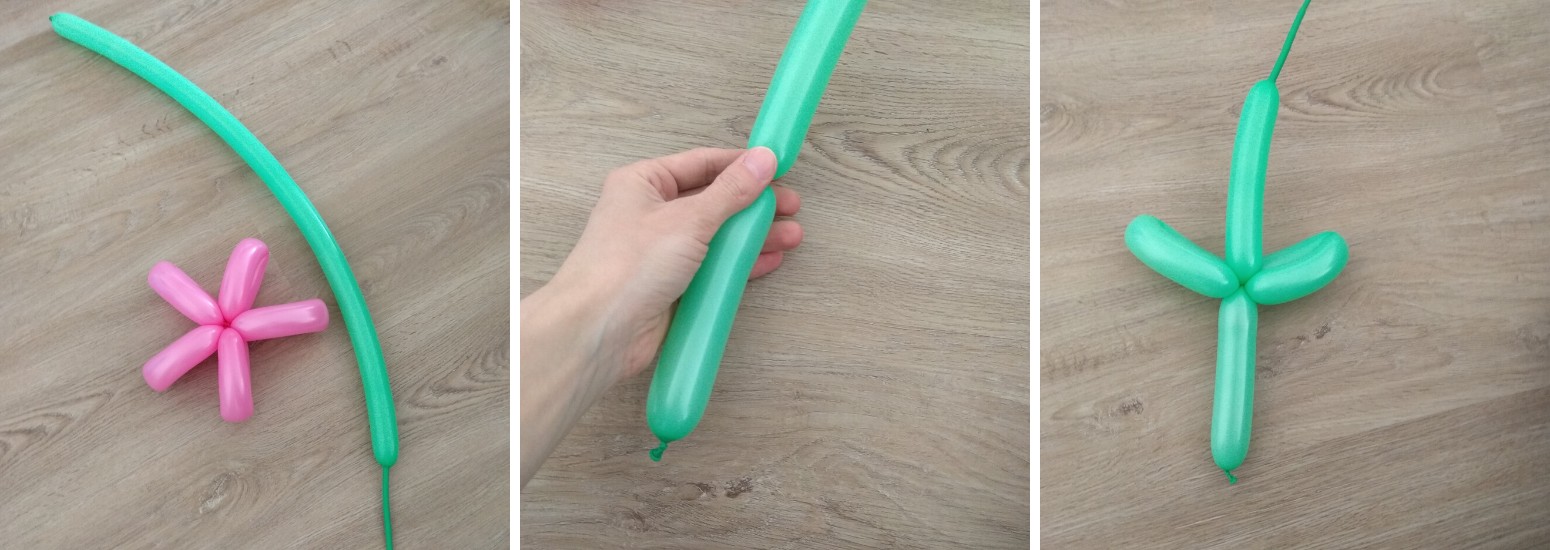 10. Dlouhý konec balonku obtočíme kolem středu a zatočením opět připevníme k základu.