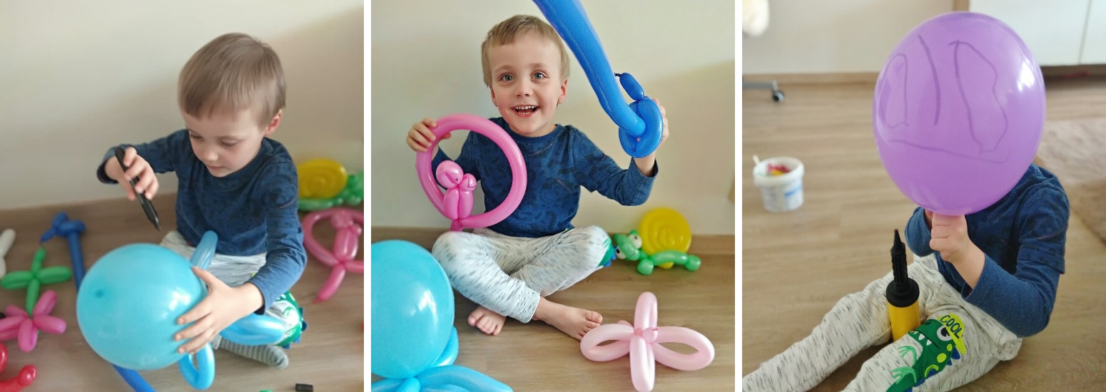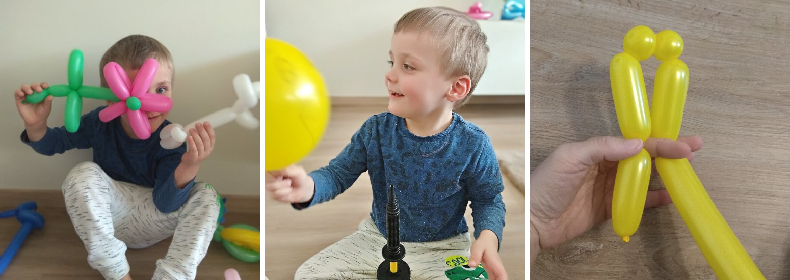 1. Balónek nafoukneme, necháme trochu delší nedofouklý konec a zauzlujeme.