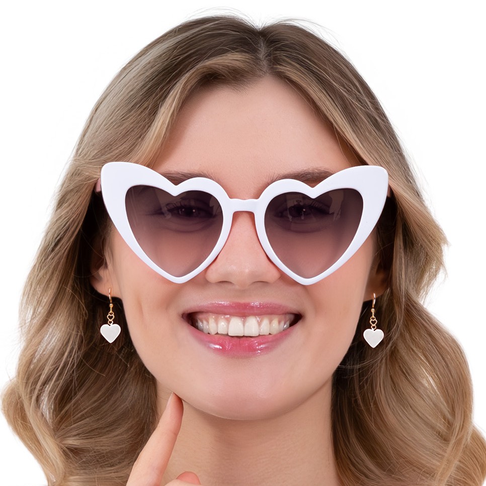Sluneční brýle ve tvaru srdce v bílé barvě.