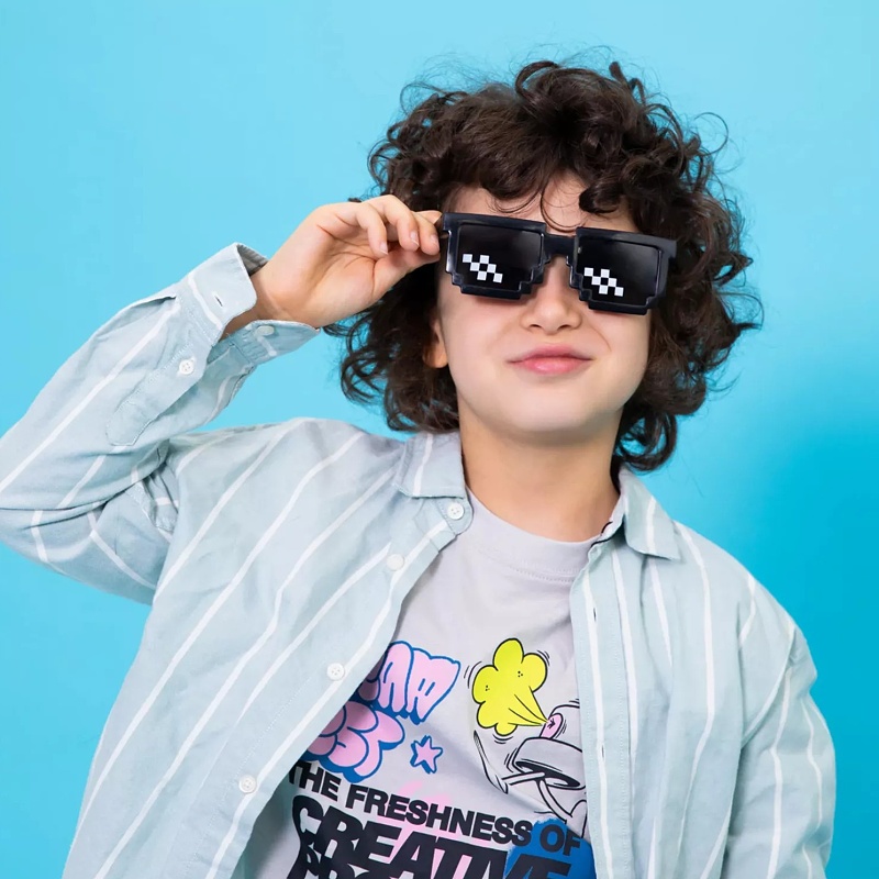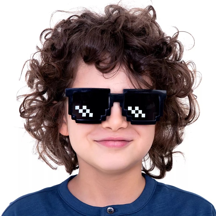 Originální párty brýle v pixelovém motivu. Brýle jsou v pixelovém designu, s odleskem světla, které je také složené z jednotlivých pixelů a laděné do černé a bílé barvy.