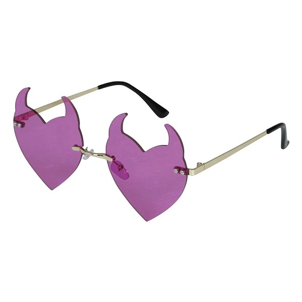 Fialové brýle srdce s rohy využijete na halloweenskou nebo čertovskou párty.