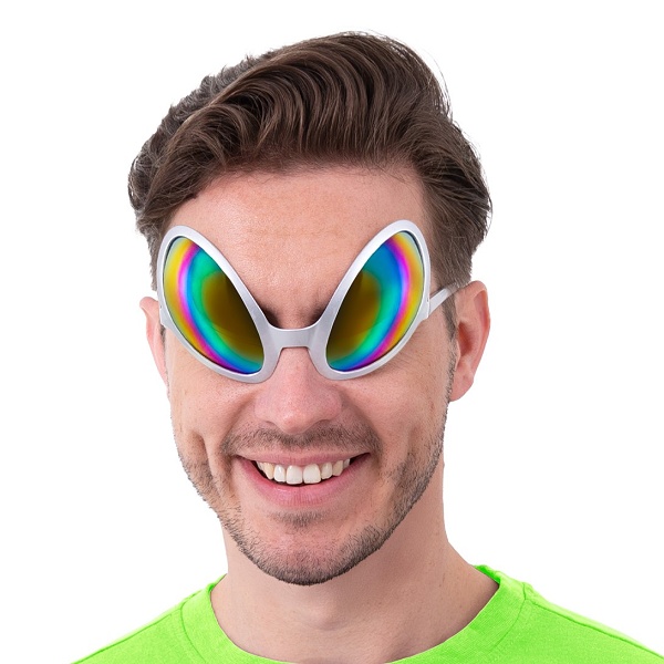 | Stříbrné brýle s motivem Ufo s benzínově zbarvenými čočkami. Perfektní doplněk ke kostýmu mimozemšťana nebo vesmírné … |