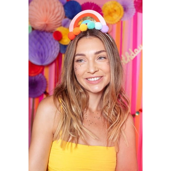 | Duhová čelenka s barevnými bambulkami Vhodný a veselý doplněk pro dívky i ženy na narozeninové i tématické … |