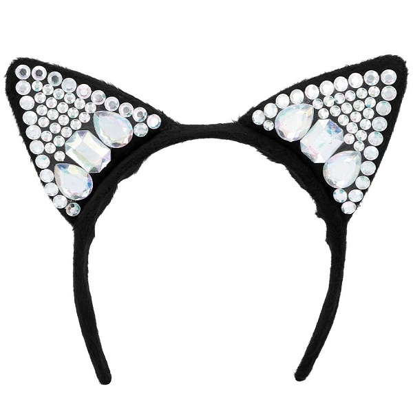 Stylová čelenka s kočičími oušky, zdobenými diamanty.