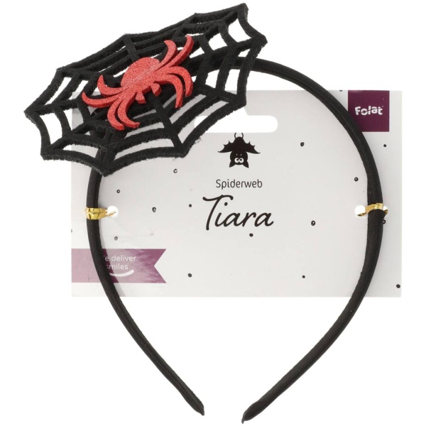 Pavouk a pavučina jsou vyrobeny z třpytivé pěny. Čelenka je vyrobenž z plastu a potažená černou látkou.