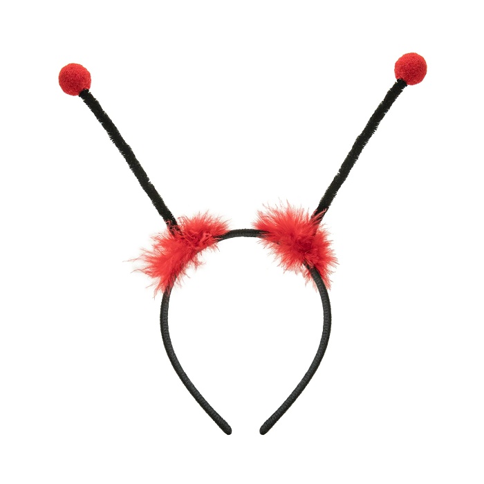 Party čelenka s červenými tykadly je hravý doplněk, který okamžitě přemění každé dítě i dospělého na rozkošnou berušku.