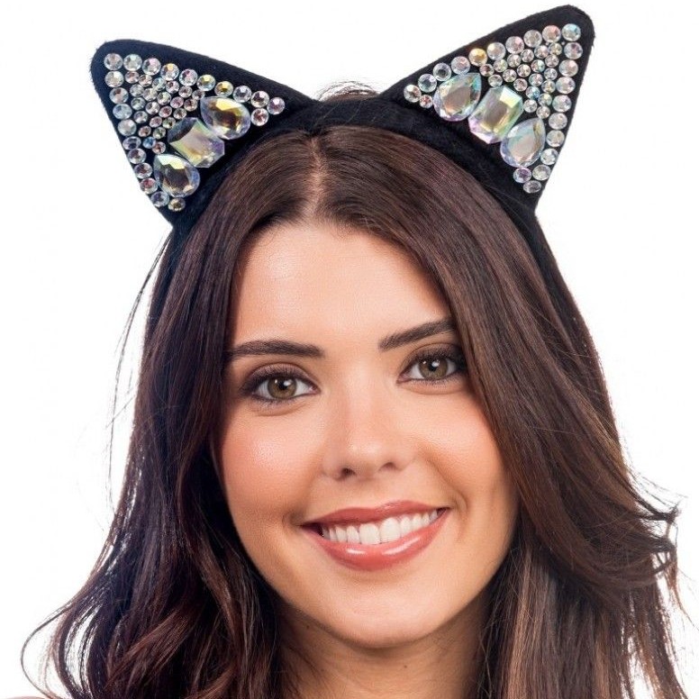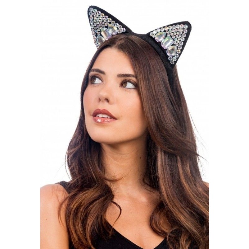 Stylová a originální čelenka s kočičími oušky, zdobenými bílými diamanty.