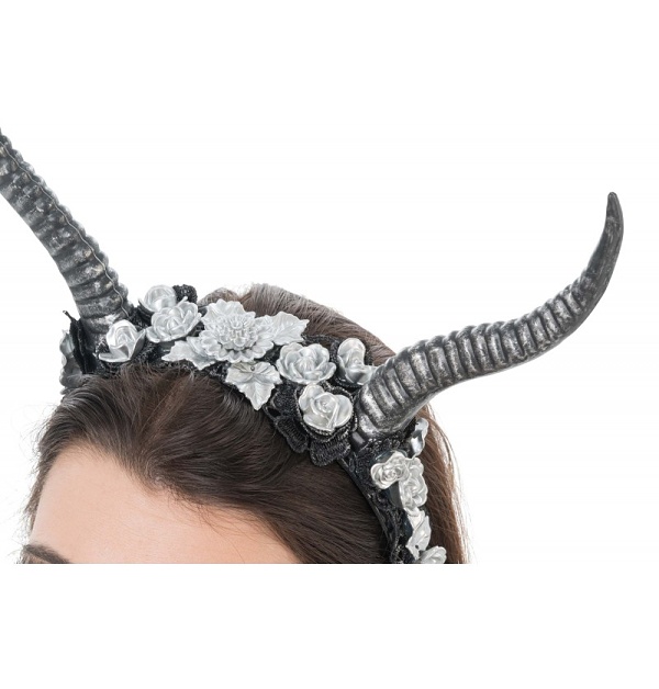 A právě tato čelenka se stříbrnými rohy a třpytivými květy je vhodný doplněk pro Halloweenskou párty, maškarní ples nebo temnou událost.