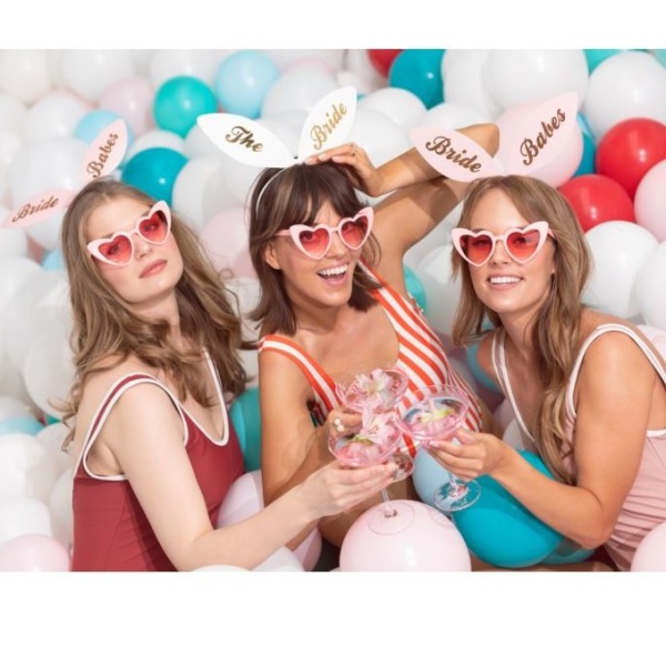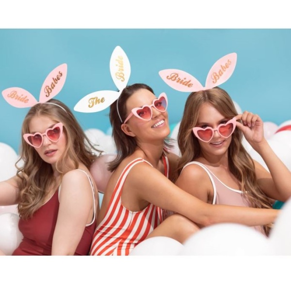 5 ks růžových čelenek je s nápisem "Bride Babes" a 1 ks bílé čelenky s nápisem "The Bride" rozhodně nesmí chybět na hlavě budoucí nevěstě a její družině.