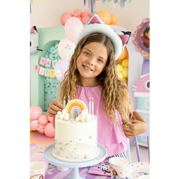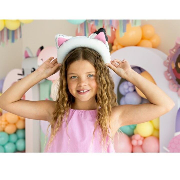 Fóliový balónek ve tvaru kočičích oušek Gabby's je originálním doplňkem dětské tématické párty Gabby's Dollhouse. Díky svému jedinečnému designu a mixu barev přináší hravou atmosféru a okamžitě zaujme ty nejmenší slečny.