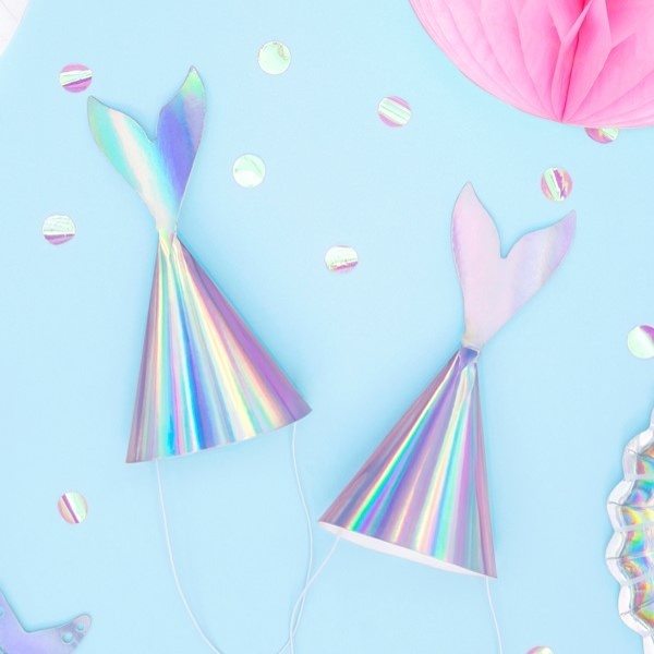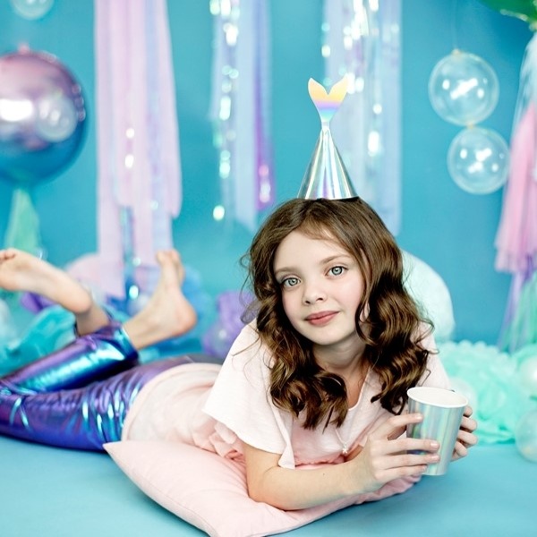 Papírové párty čepičky mořská panna duhová jsou tím pravým doplňkem na tématickou párty s Mořskou vílou nebo oživí vaši Mermaid párty.