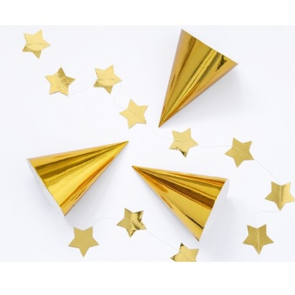 | Párty čepičky papírové zlaté Party čepičky ve zlaté barvě, které se hodí na tématickou párty, narozeninovou oslavu, … |