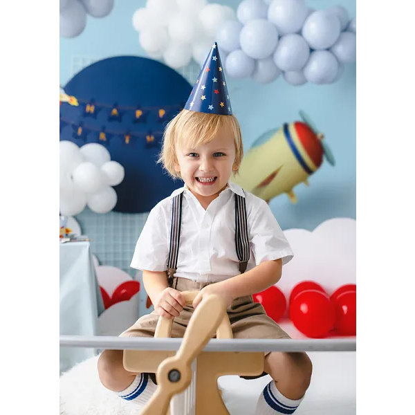 | Papírové párty čepičky v tmavě modré barvě s barevnými hvězdičkami Skvěle doplní každou párty pro děti i … |