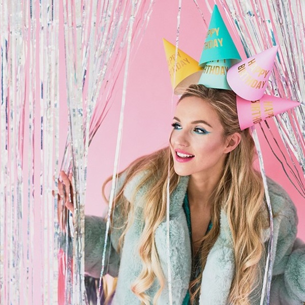 Narozeninové čepičky se zlatým saténovým nápisem Happy Birthday v krásných jemných pastelových barvách
