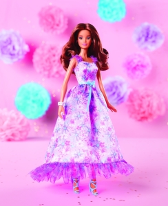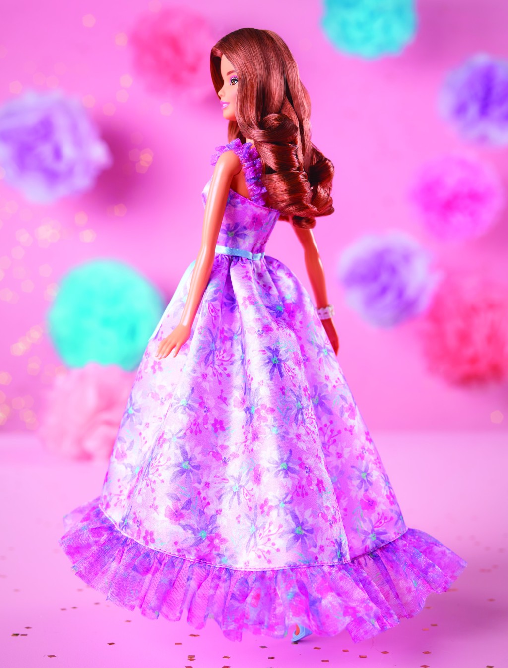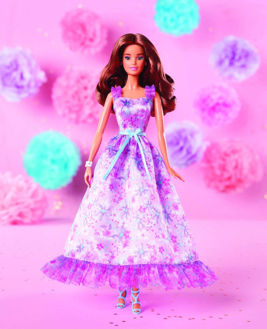 Panenka Barbie Úžasné narozeniny má krásné šaty a elegantní doplňky a je připravena pro každou narozeninovou oslavu.