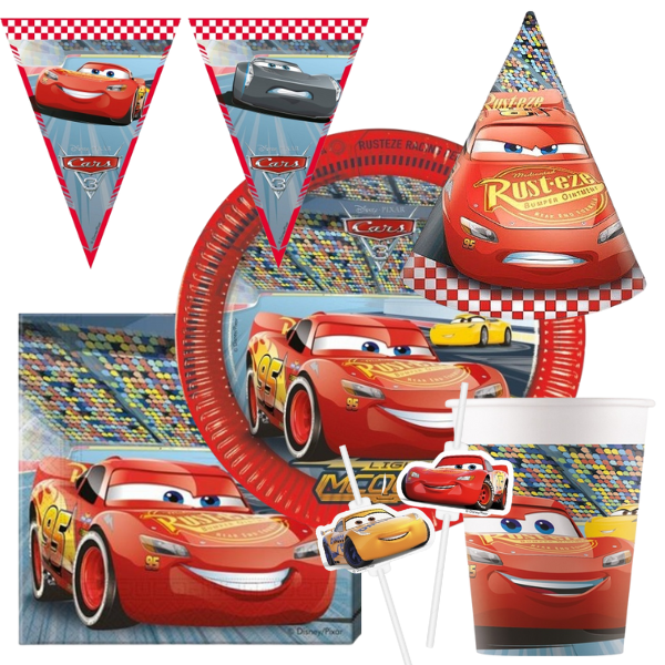 Ideální sada pro malé závodníky! Tento tematický set s motivem Cars 3 zajistí skvělou atmosféru na každé dětské oslavě.
