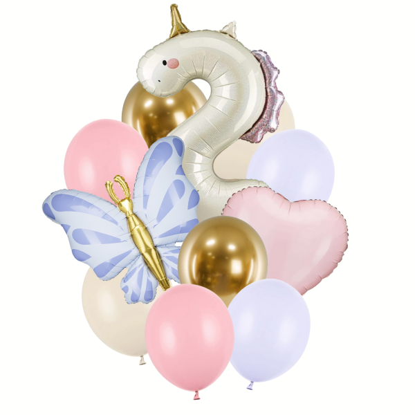 Kouzelný pastelový balónkový buket s motivem jednorožce a číslem 2, ideální pro oslavu pátých narozenin! Jemné barvy v kombinaci s pohádkovými tvary vytvoří nádhernou dekoraci i nezapomenutelný dárek pro malé oslavence.