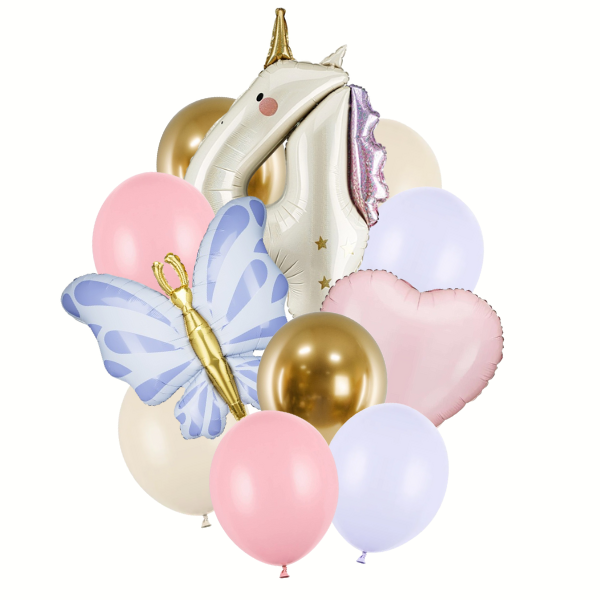Kouzelný pastelový balónkový buket s motivem jednorožce a číslem 4, ideální pro oslavu pátých narozenin! Jemné barvy v kombinaci s pohádkovými tvary vytvoří nádhernou dekoraci i nezapomenutelný dárek pro malé oslavence.