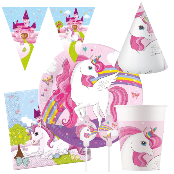 Rozkošný party set s motivem Jednorožec je ideální pro malé oslavenkyně! Vytvořte kouzelnou atmosféru plnou zábavy a radosti.