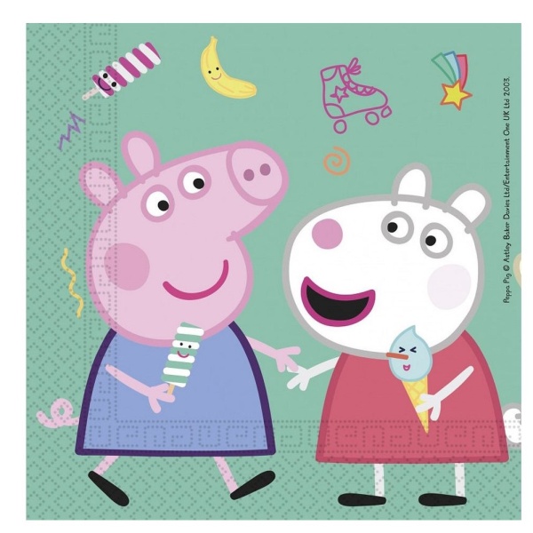 Papírové ubrousky s potiskem z pohádky se známým a velmi oblíbeným u dětí prasátkem Peppou skvěle doladí vaše stolování na tématické párty.