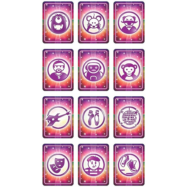 Balení obsahuje: imitaci mikrofonu se stojánkem, 12 karet výzvy, otočnou část s podložkou.
