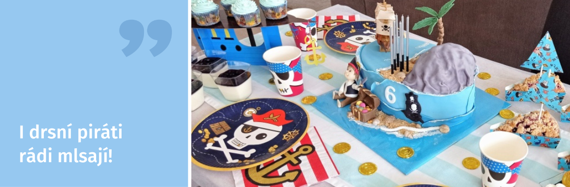 Po našich novinkách v sekci Cukrářské potřeby se jen zaprášilo! Až nás to překvapilo. Takže jsme hned objednali novou várku. A když vás pečení a zdobení domácích laskomin takhle chytlo, sledujte naše stránky, novinky budeme vybalovat každý týden. A aby bylo jasné, že se s cukrářskými potřebami dobře a pohodlně pracuje, poprosili jsme naši dekoratérku a skoro profesionální cukrářku Ivu, aby něco vyzkoušela. Iva se toho chopila s vervou a pro nás, vás (a hlavně pro svého malého Filípka) vystřihla luxusní pirátskou párty s dortem, cupcakes, želé, levandulovou panna cotou a bezlepkovými koláčky v krásných zapékacích lodičkových formách. To nám spadla čelist! Tady je postup, jak na to!