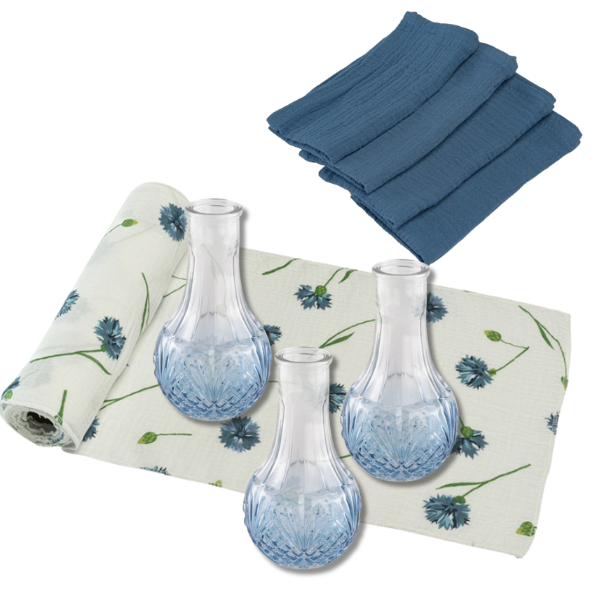 1x Šerpa bavlněná s modrými chrpami 26x300cm