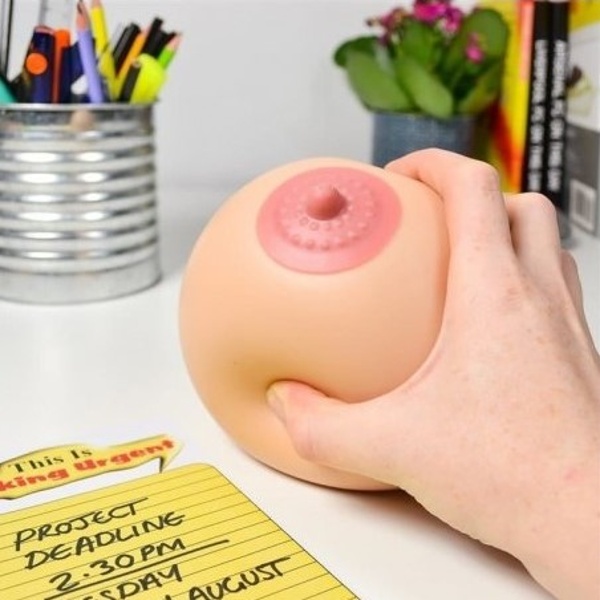 Antistresový míček, znázorňující dámské prso, na které můžete mačkat tak dlouho, jak budete potřebovat.