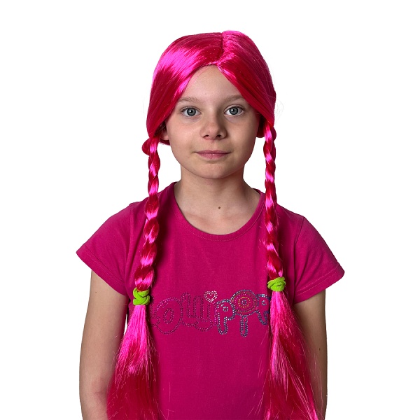 Sytě růžová dětská paruka pro všechny malé fanynky populární dětské skupiny Lollipopz.