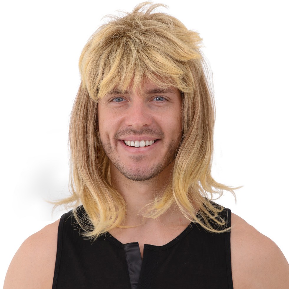 | Pánská středně dlouhá blond paruka s rozcuchanými vlasy ve stylu 60., 70. a 80. let. a ofinou Paruka se snadno nasazuje, … |