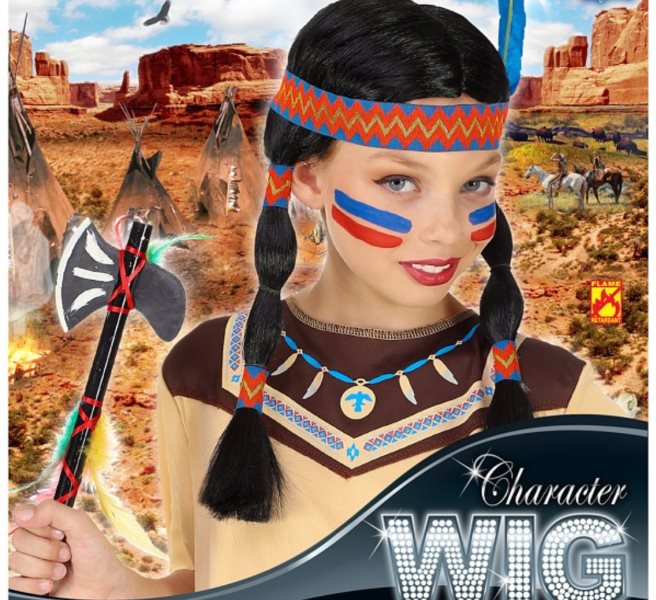 Paruka černá Indiánka s copánky a čelenkou.