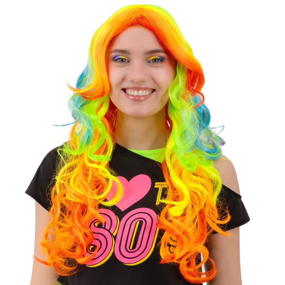 Paruka s dlouhými vlnitými a barevnými vlasy