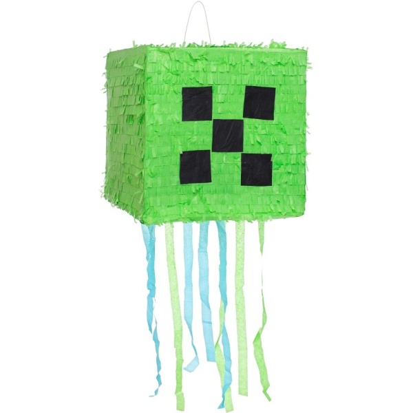 Pak je tato piňata Minecraft TNT pixel ten pravý dárek a doplněk. Piñata je pokryta pruhy zeleného hedvábného papíru.