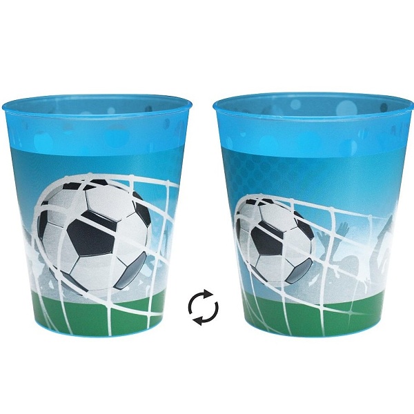 Tento kelímek je s fotbalovým motivem je nepostradatelný doplněk stolování na tématickou nebo narozeninovou fotbalovou párty.