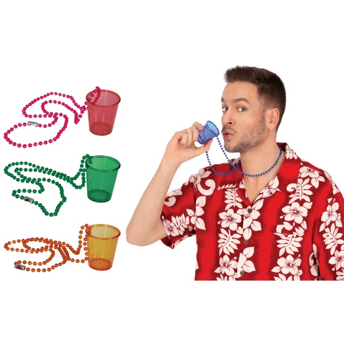 Plastové panáky na krk ve 4 barvách pro pohodovou konzumaci alko drinků.