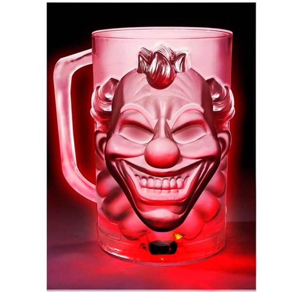 Zdánlivě obyčejná sklenice, ale když přepnete spodní tlačítko, hrnek se rozsvítí červeným světlem, což dává úžasný efekt. Na hrnku je strašidelný klaun, který jistě dokresluje halloweenskou atmosféru. Tento pohár má design Killer Clown s realistickými detaily, které vaše hosty jistě ohromí. Třešničkou na dortu tohoto poháru je jeho vnitřní světlo, které vytváří zlověstný efekt a oživuje design, takže je ještě mrazivější.
