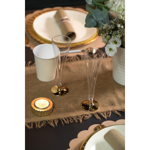 Prostřete krásný a elegantní stůl s těmito elegantními skleničkami na šampaňské se zlatou stopkou pro slavnostní večer.