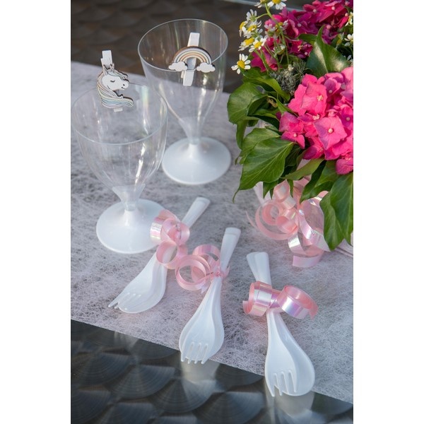 Skleničky plastové v průhledném provedení s bílou stopkou.