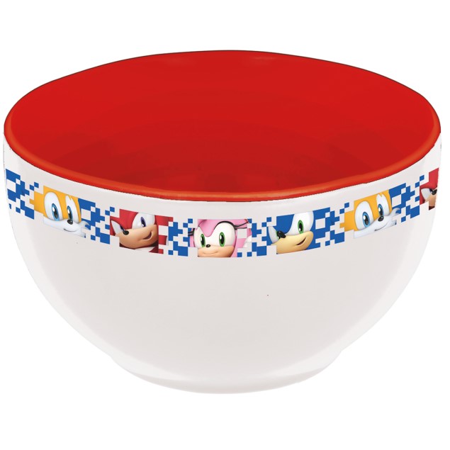 Bílá miska s motivem Sonika a jeho přátel je o objemu 600 ml