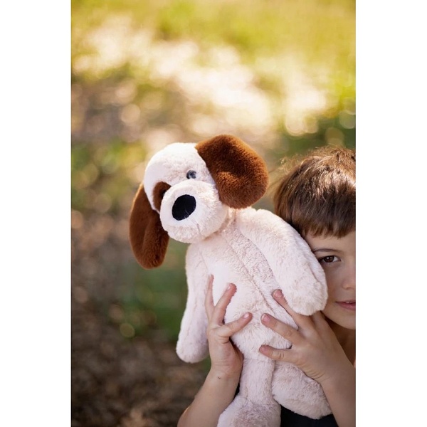 Tento roztomilý plyšový bílo-hnědý psík je ideálním společníkem pro všechny malé milovníky pejsků. Je vyrobený z měkkého a jemného plyše, příjemný na mazlení a objímání.