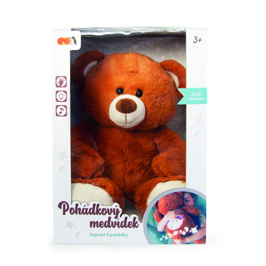- Tento pohádkový medvídek je tak měkoučký. Vypráví 4 známé pohádky: O Červené Karkulce, O perníkové chaloupce, O Popelce a Sůl nad zlato. Lze nastavit dvě úrovně hlasitosti. Umístěte ho cca. 1,5 m od stěny a sledujte krásnou duhovou show, kterou rozehraje projektor na medvíkových zádech. Má 3 úrovně intenzity LED světla. Po 10 minutách nečinnosti se sám vypne. Věk: 3 +. Balení obsahuje medvídka s projektorem. Vyžaduje 3 x AAA baterie (nejsou součástí balení).