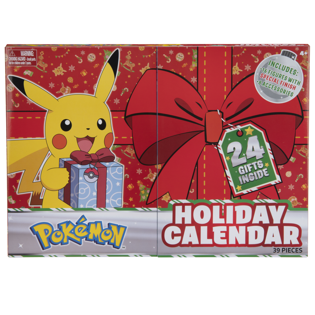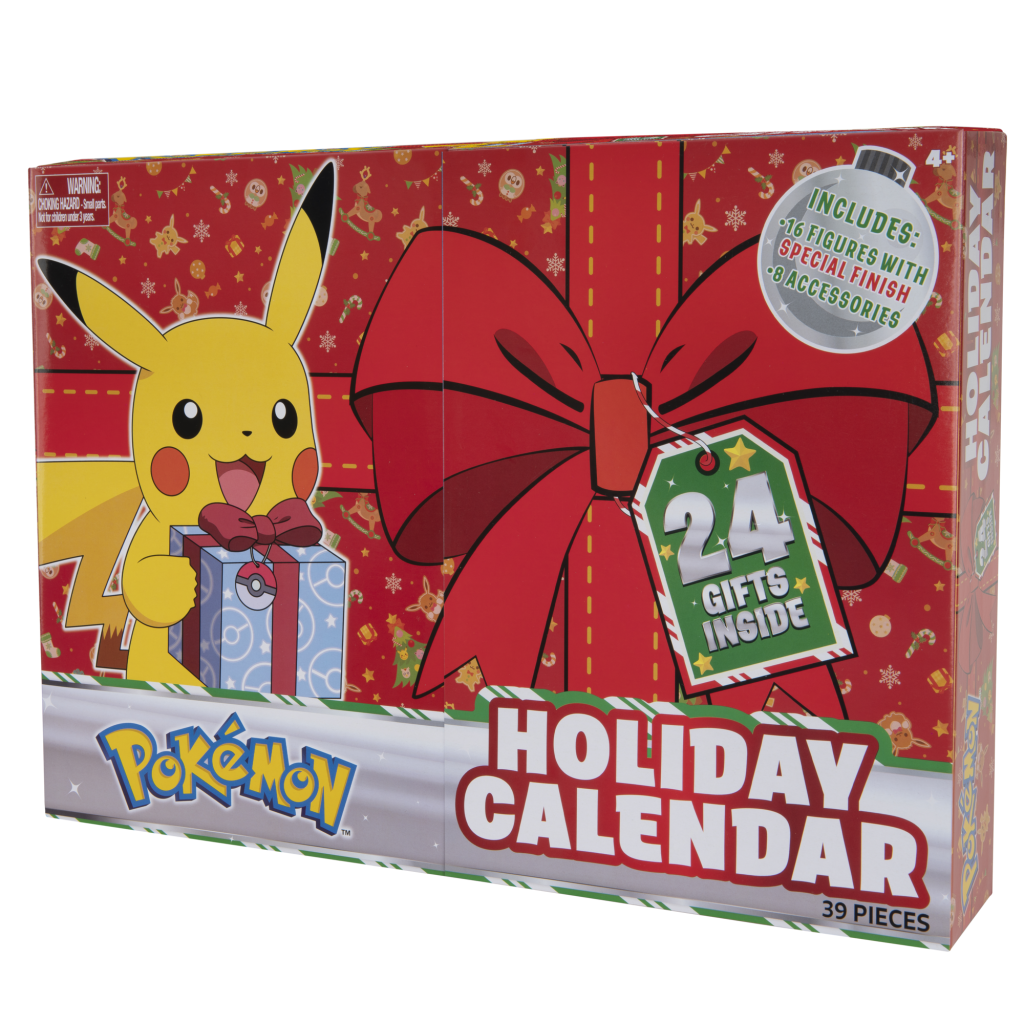 - Pokémon adventní kalendář obsahuje 16 figurek + další příslušenství. Každý den přinese nové překvapení, protože když otevřete dvířka s dalším číslem, najdete za nimi figurku Pokémona (celkem je tam až 16 různých hrdinů, mezi nimi Pikachu, Squirtle, Bulbasaur a Eevee) nebo předmět spojený s Vánocemi (celkem 8)! Adventní kalendář obsahuje až 24 dílků a jistě potěší každého fanouška Pokémonů!