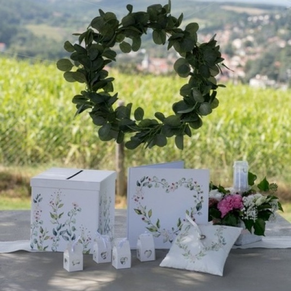 | Bavlněný svatební polštářek na prstýnky Green s bílou saténovou … |