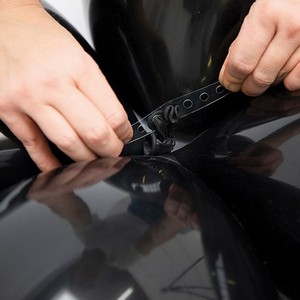 Pomůcka pro snadnou dekoraci z balonků. Pokud chcete jednoduše vyrobit balónkovou girlandu, stačí nafouknout balónky vzduchem a jejich konce provlékat vždy očkem pásky. Doporučujeme balónky proplétat vždy každým třetím očkem.