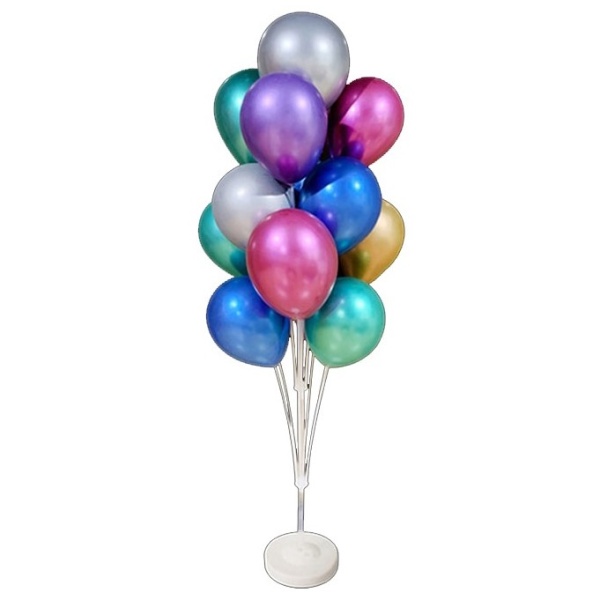 Zavázané balónky lze snadno a rychle připevnit ke košíčkům na konci tyček. Tento stojan na balónky má 13 tyčinek a slouží k vytvoření balónkové dekorace ze stejného počtu balónků. Tyčinky ve stojanu jsou uspořádány tak, že balónky po připevnění tvoří soudržný celek. Výhodou tohoto stojánku je, že rám pro balónky snadno složíte a uskladníte pro další příležitost.