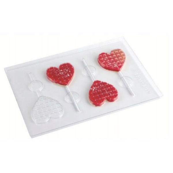 Set forem z plastu na výrobu čokoládových lízátek ve tvaru srdce