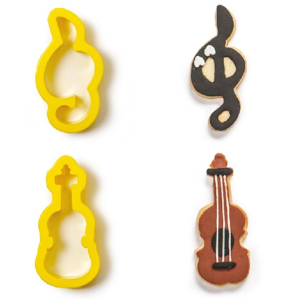 Sada plastových vykrajovátek na těsto ve tvaru houslového klíče a houslí