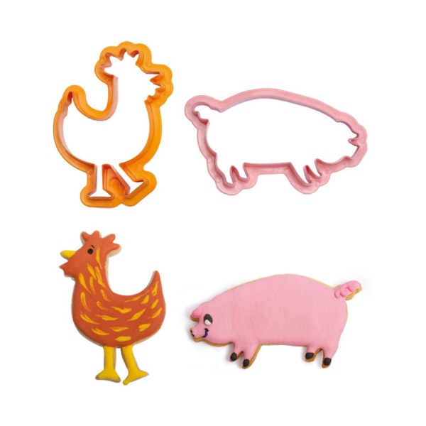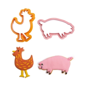 Tato domácí zvířátka potěší především malé děti. Sada vykrajovátek obsahuje formičku kohouta, prasete, krávy a ovce. Budou ideální pro krájení sušenek nebo vykrajování těsta.