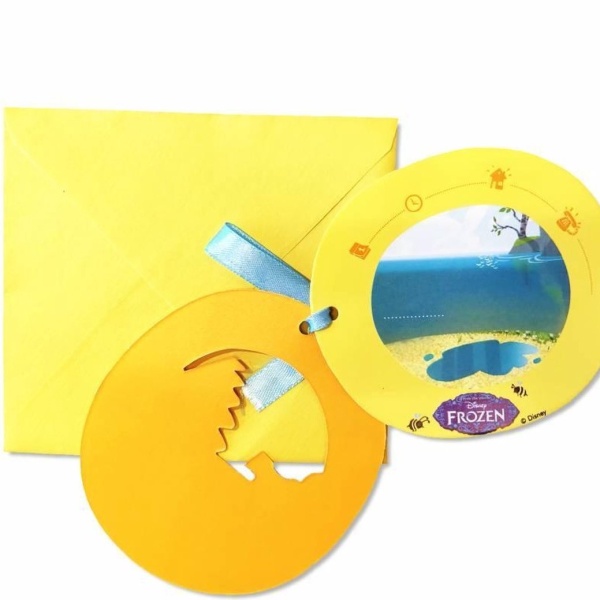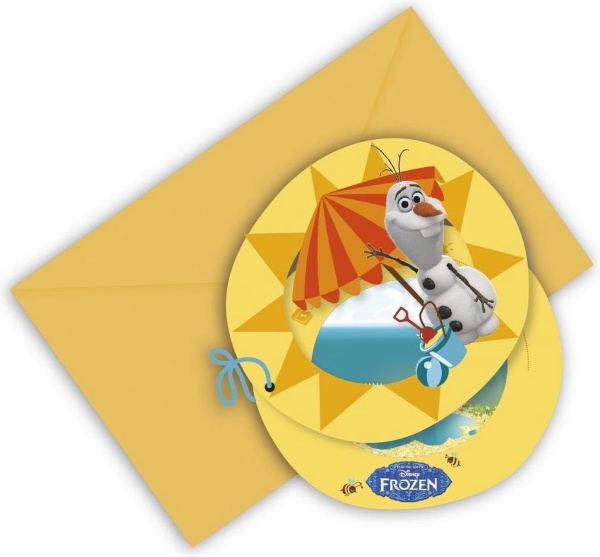 Roztomilý sněhulák Olaf vás tímto srdečně zve na oslavu. Spokojeně si sedí pod svým slunečníkem a mává na vás, by vám osobně doručil pozvánku.